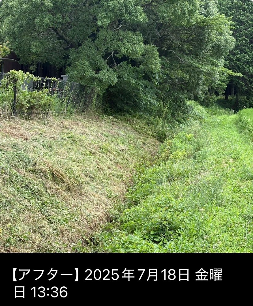 | 作業内容 | 春日町の施設外の農水路法面(施設側)の草刈です |