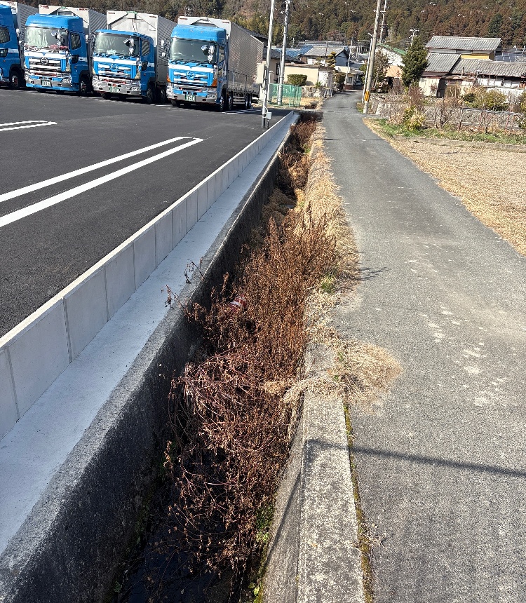 | 作業内容 | 駐車場、側溝の溝掃除、草刈、刈草と落ち葉の収集、搬出 //山南町の運送会社さま |