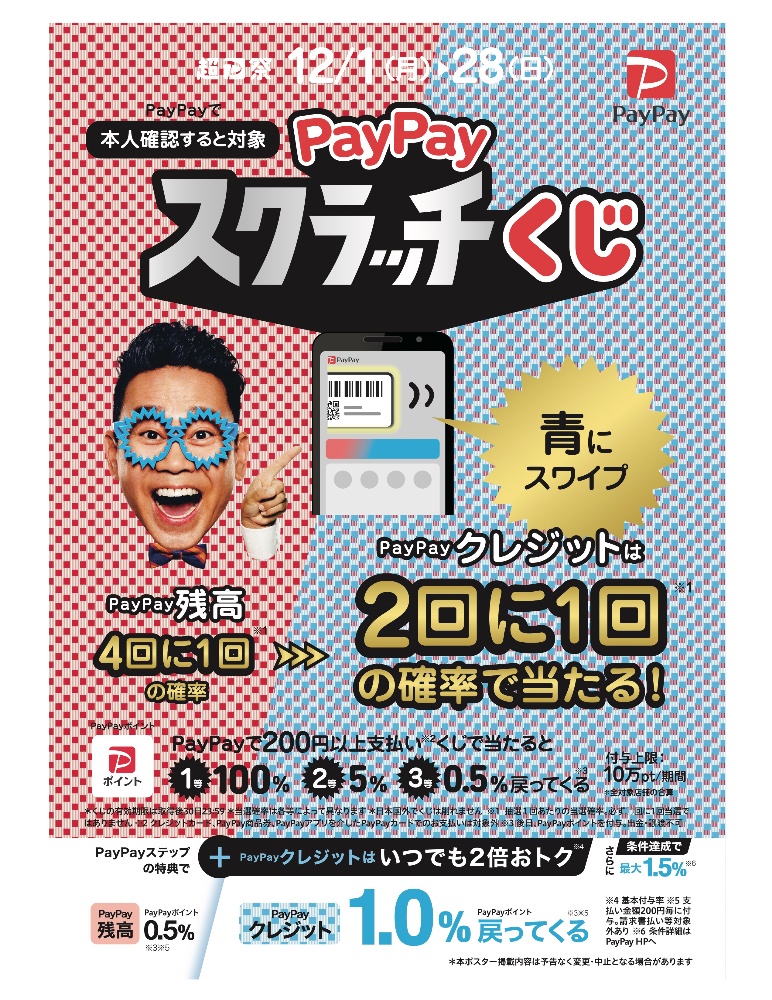 12月1日より「PayPayスクラッチくじ」を開催中。