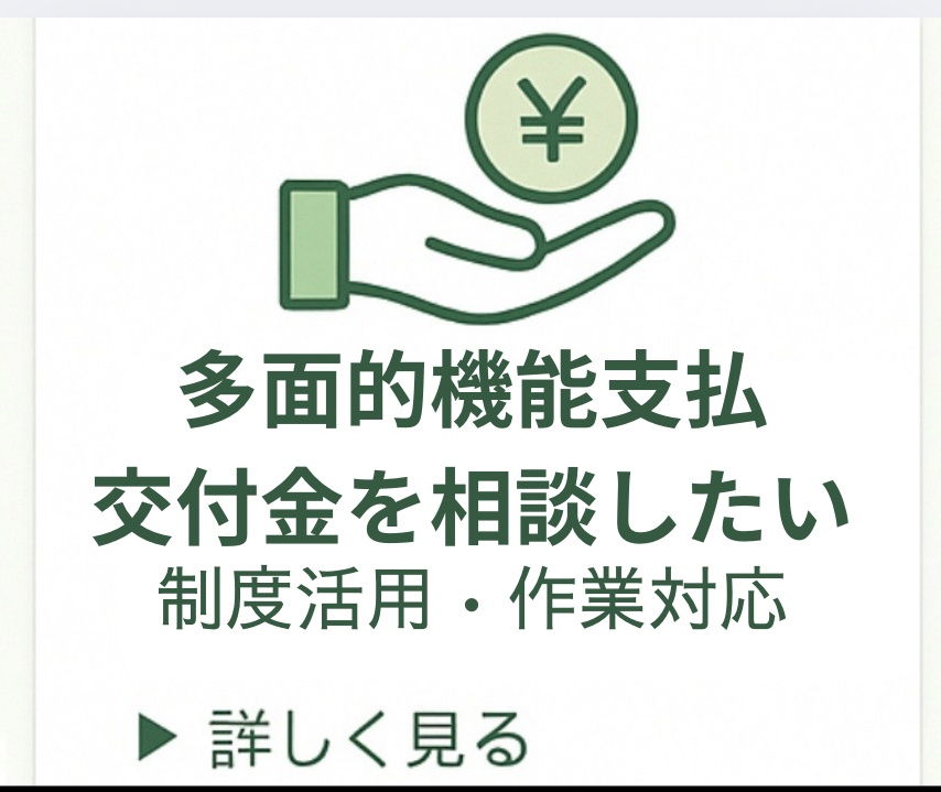 多面的機能支払交付金は、農地や水路、農道などを守る活動を支援する制度です。草刈りや管理作業が対象となる場合もあり、条件が合えば “自己負担を抑えた管理 “が可能です。制度の内容確認から、作業内容の整理・現場対応まで先ずはご相談ください。