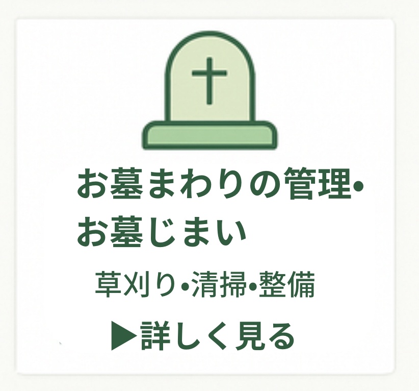 お墓まわりの草刈りや清掃は、体力的・時間的に大きな負担になります。・定期的な草刈り・一時的な整備・お墓じまい前の環境整理状況に応じて、無理のない形で対応します。