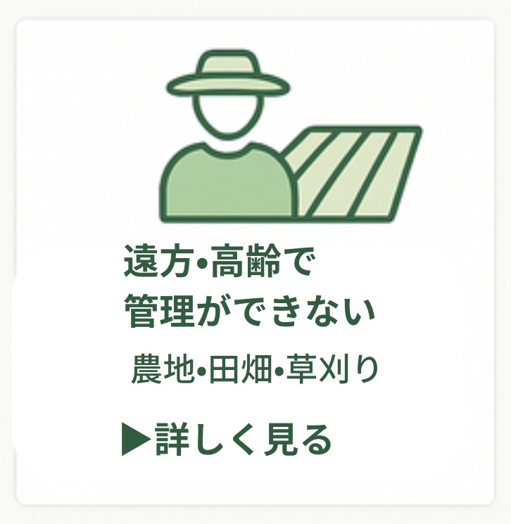 遠方にお住まいの方や、ご高齢で作業が難しくなった方に代わり、草刈り・管理作業を責任をもってお引き受けします。・単発作業/定期管理どちらも対応・立ち会い不要・写真での作業報告も可能まずは現状をお聞かせください。ご予算と目的に合わせた管理方法をご提案します。
